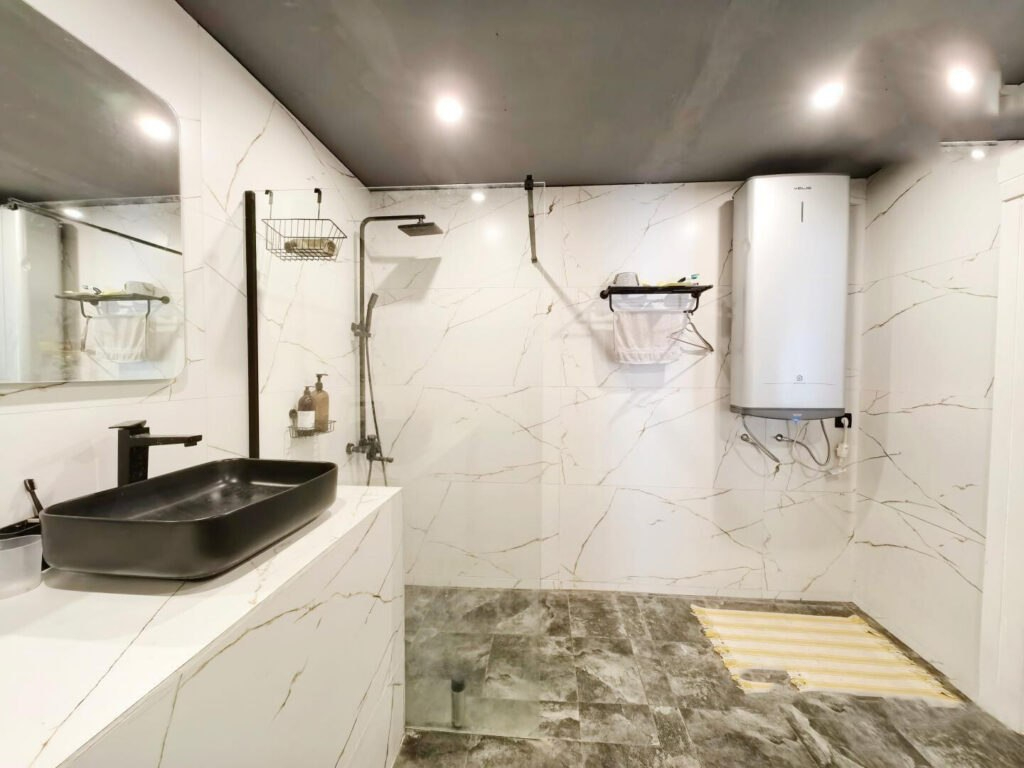 Вода поступает из собственной скважины, а канализация — через септик. В доме проведен интернет и предусмотрены системы видеонаблюдения и охранной сигнализации.