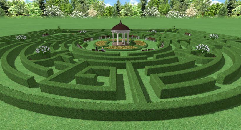 Лабиринт займет 1 га (это площадь100х100 метров). Немало, учитывая, что одним из самых больших садовых лабиринтов в мире считается «Лабиринт Мечты» в Китае. Его площадь более 35 000 квадратных метров (или 3,5 га). Этот лабиринт создан в 2017 году.