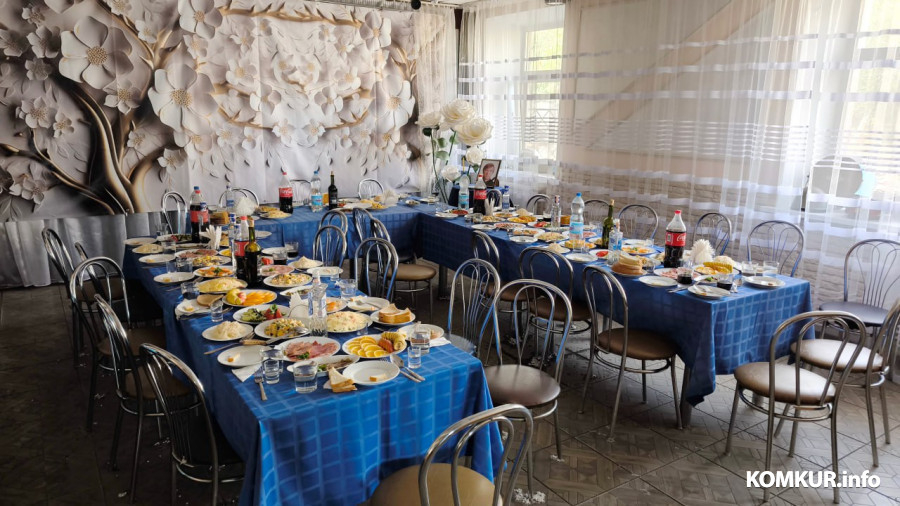 В день пожара в кафе заказали поминальный обед. Банкетный зал также уцелел. Столы так и остались стоять нетронутыми. Блюда, напитки, рядом фотография усопшего.