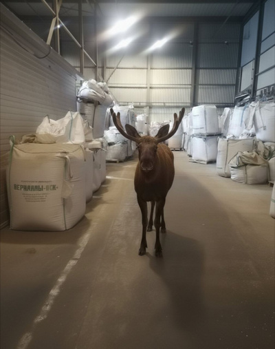 Под Могилевом на склад наведался лось. Осмотрелся и молча удалился