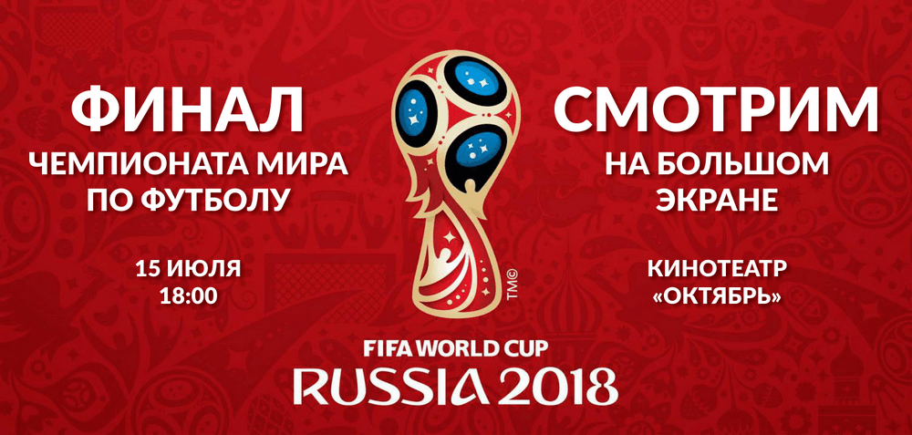 Разыгрывается 1 билет на двоих в кинотеатр «Октябрь» на просмотр на большом экране финала Чемпионата мира по футболу 2018.