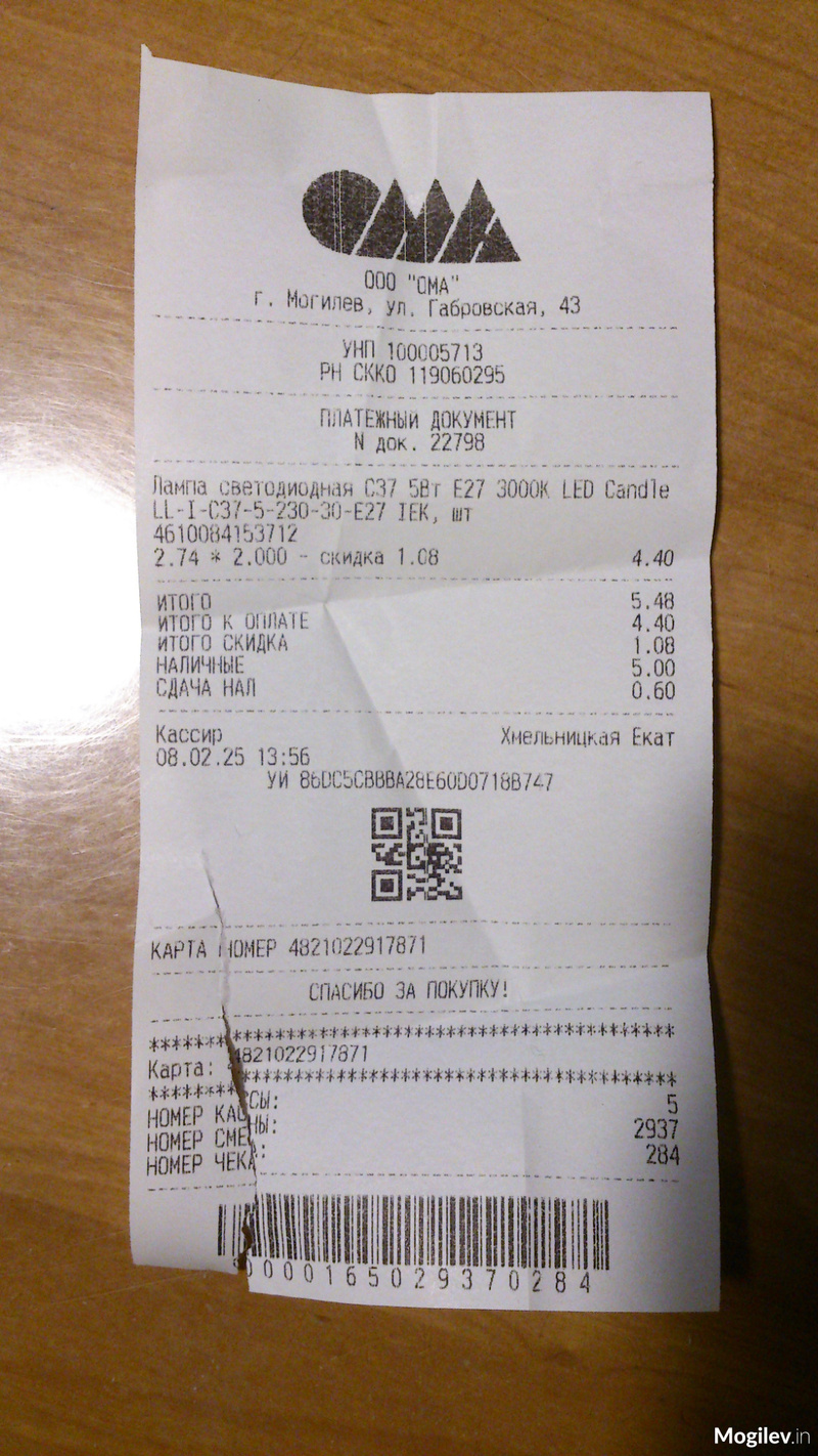 8.02.25 в строительном магазине ОМА купил две светодиодные лампы IEK 5Вт, 3000К, 400Лм. Перед покупкой я их включал на проверочном стенде и смотрел, чтобы не было мерцания (проверяется через камеру мобильного телефона). Его не было. Принес домой, выдержал при комнатной температуре 4 часа, включил и на обеих наблюдал сильное мерцание. Причем включал в разные светильники. В других магазинах при проверке, если лампа не мерцает в магазине, то и дома не мерцает. В ОМА это уже второй случай такой неудачной покупки. Либо у них так подобрано освещение отдела, при котором не видно мерцания, либо в проверочном стенде используется постоянный ток, при котором нет мерцания, либо еще по какой-то причине. Отдел магазина ОМА в котором продаются лампы, люстры и светильники меня сильно разочаровал.