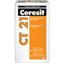 Ceresit CT 21 предназначена для кладки стен и перегородок из газосиликатных, пенобетонных, керамзитобетонных блоков, блоков из ячеистого бетона и других штучных стеновых материалов внутри и снаружи зданий. Растворная смесь также может применяться для заполнения выбоин, трещин, устранения неровностей. Свойства материала Ceresit CT 21 дают возможность выполнить кладку блоков при толщине швов от 2 до 5 мм.