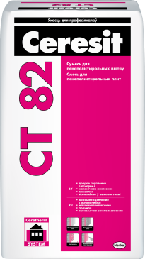 Смесь Ceresit CT 82 КС1 зима предназначена для приклеивания теплоизоляционных материалов (пенополистирольных/минераловатных плит) и выполнения защитного армированного слоя при утеплении фасадов зданий и сооружений. Является составной частью систем утепления Ceresit на базе пенополистирольных и минераловатных плит. Применяется при утеплении по кирпичным, бетонным, оштукатуренным и другим минеральным поверхностям новых зданий, а также зданий, находящихся в эксплуатации.