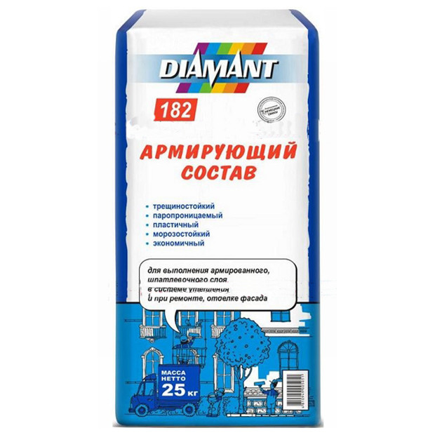 для выполнения армированного слоя в легких штукатурных системах утепления (ЛШСУ) Diamant типов КН-0 и КН-2, при ремонте и отделке фасада.