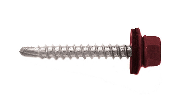 Металл Профиль Саморез 4,2х16 RAL 3005 (красное вино) с прессшайбой со сверлом