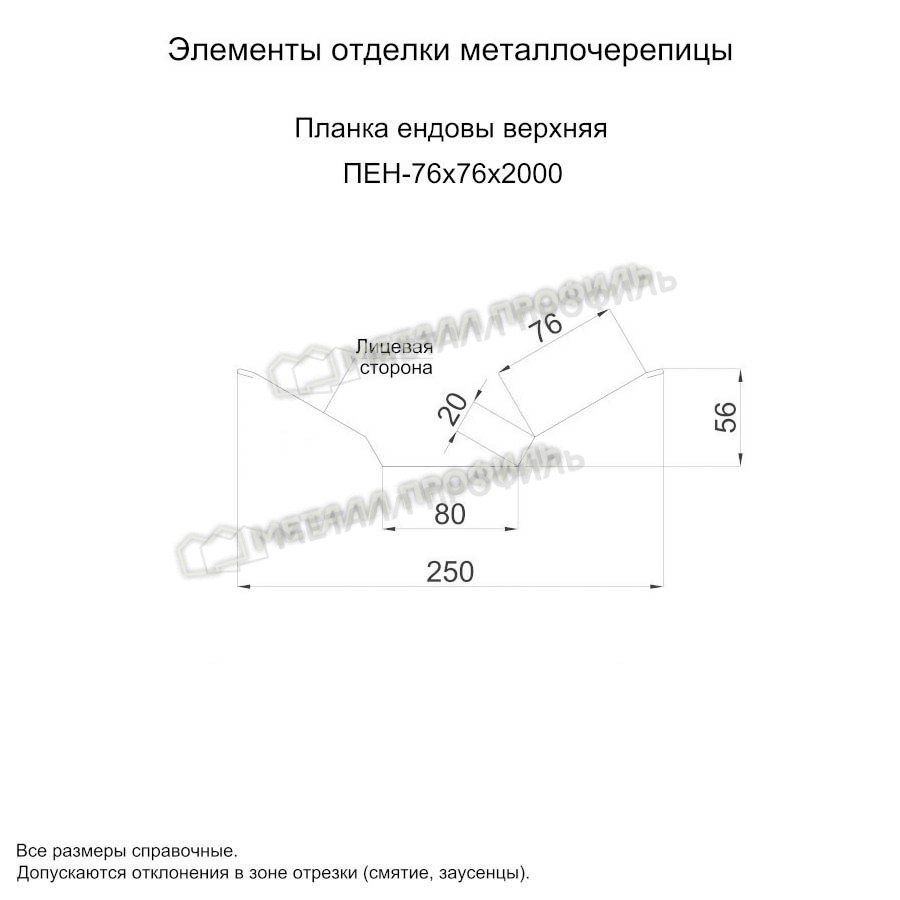 Металл Профиль Планка ендовы верхняя 76х76х2000 (MattMP-20-8017-0.5)