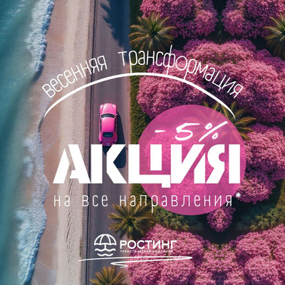 Весна — время пробуждения и волшебных превращений. Когда природа оживает, внутри нас тоже просыпается желание перемен. Хочется не просто мечтать, а воплощать свои мечты здесь и сейчас. Компания «Ростинг» дарит вам скидку 5% на туры по…